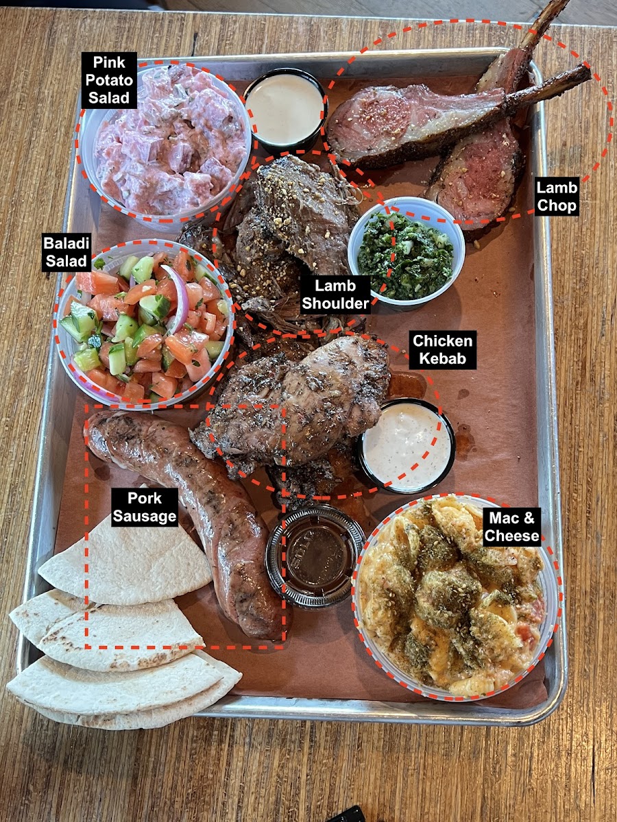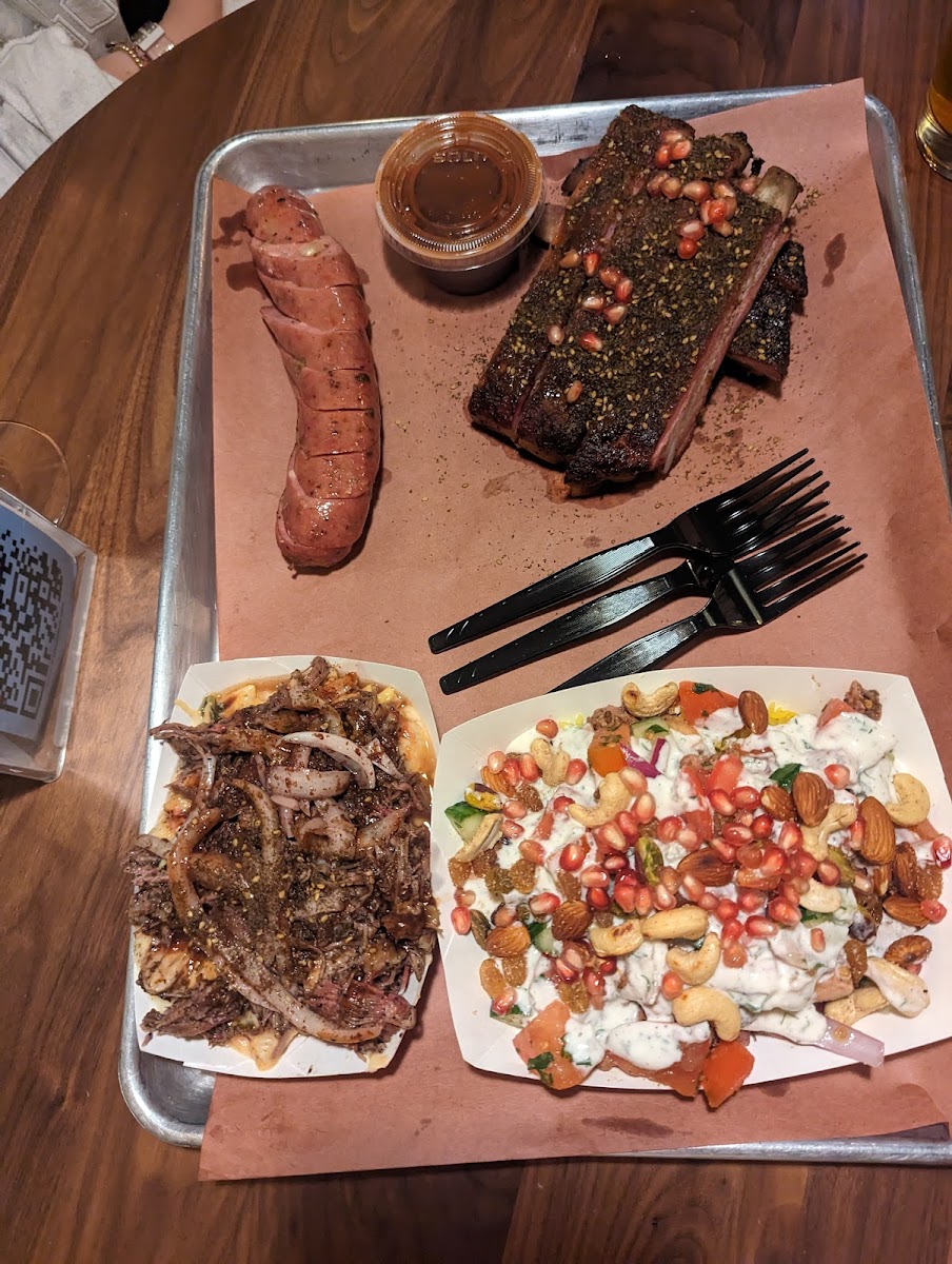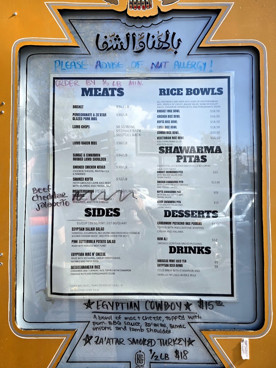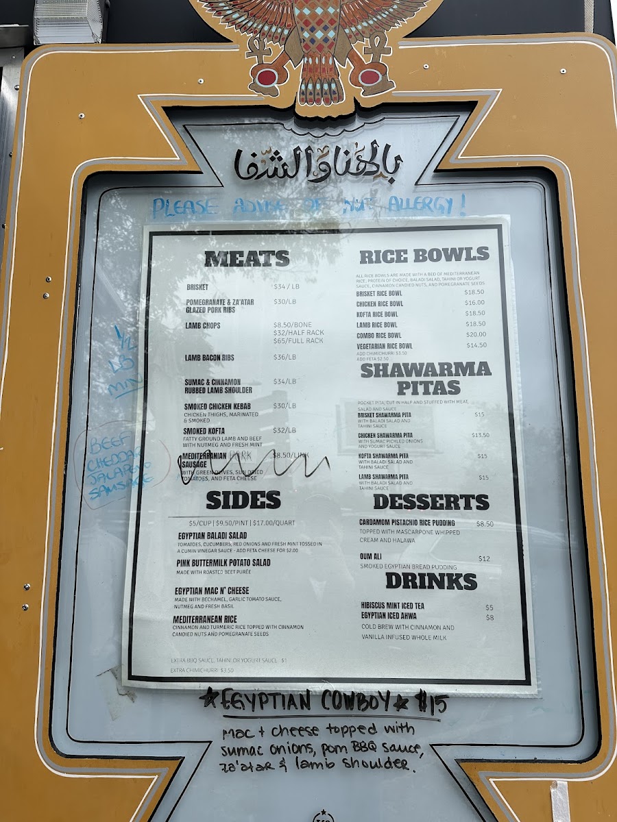 Don’t miss their Lamb Bacon Ribs, an indulgent cut of bone-in lamb belly, smoked until it practically melts in your mouth. The Brisket Shawarma served in a fluffy pocket pita, accompanied by Egyptian garden salad and tahini sauce, seamlessly combines the best of barbecue and Middle Eastern cuisine. Each bite bursts with rich flavors that transport you to new culinary realms.